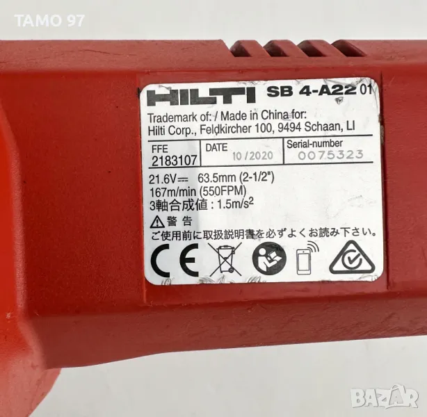 Марка и модел: Hilti SB 4-A22 Напрежение на мотора: 22V