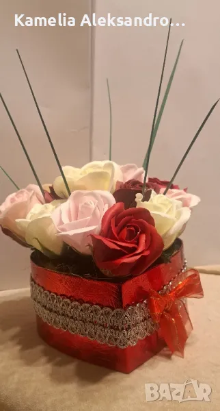 Букет от 15 бр. неувяхващи сапунени рози декорирани в кутия,прекрасен подарък за всеки повод,който остава скъп спомен.