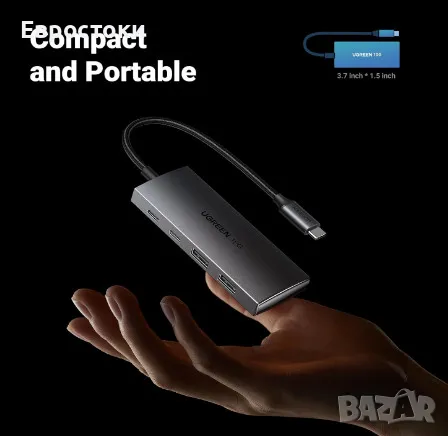 Перфектен спътник на устройството. USB хъбът UGREEN е само 3,7 x 1,5 инча, малък и лек. Независимо дали сте в офиса или пътувате, той е идеалният спътник на устройството и няма да заема допълнително място или тегло.