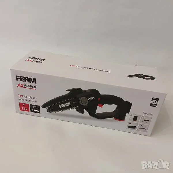 FERM CSM1055 е компактен и удобен инструмент, който е идеален за подрязване на дървета, храсти и събиране на дърва за огрев. Благодарение на 12 V литиево-йонна батерия с капацитет 2,0 Ah, устройството осигурява мобилност и безжична работа без необходимост от захранваща връзка.