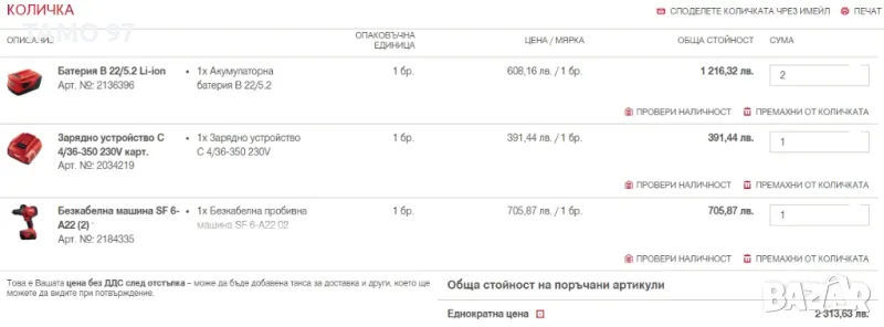 Магазинската цена на комплекта е: 2 313лв. БЕЗ ДДС (С ДДС е 2 775лв)
