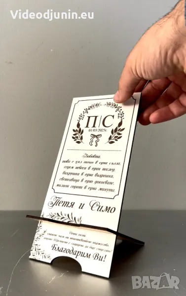 Гравирана покана- поставка за телефон, снимка 1 - Сватбени аксесоари - 49352504 Гравирана покана- поставка за телефон, снимка 2 - Сватбени аксесоари - 49352504 Гравирана покана- поставка за телефон, снимка 3 - Сватбени аксесоари - 49352504 Гравирана покана- поставка за телефон, снимка 4 - Сватбени аксесоари - 49352504 Гравирана покана- поставка за телефон, снимка 5 - Сватбени аксесоари - 49352504 1/5