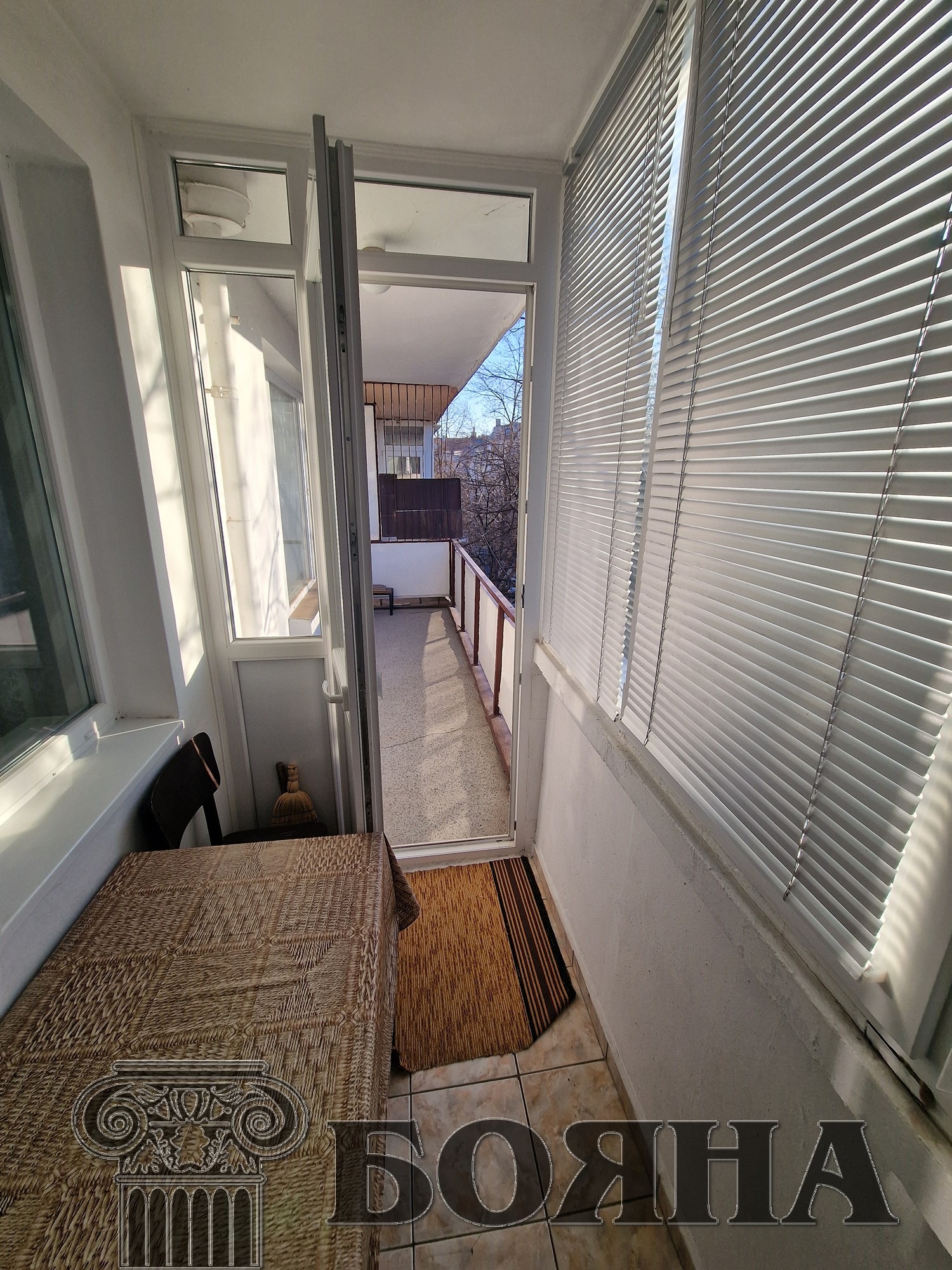 Имоти 'Бояна' предлага за продажба монолитен тристаен разширен апартамент, в квартал Хъшове, в близост до Кооперативния пазар. Имотът е много светъл, топъл и просторен. Изложението е Изток - Запад. Състои се от: голям Г-образен коридор с гардероби, всекидневна, кухня, две самостоятелни спални, отделни санитарни помещения и две големи тераси, с обща площ от 102кв. м. Жилището е добре поддържано, в тухлена жилищна сграда, поставена ПВЦ дограма висок клас. Апартаментът се продава с наличните мебели и домакински електроуреди (хладилник, микровълнова, печка, котлони, пералня, тв). Отоплението е на ток, като има поставен климатик. Към жилището има и прилежащо избено помещение с площ от 8кв. м. Контрол на достъпа, асансьор и налични места за паркиране.