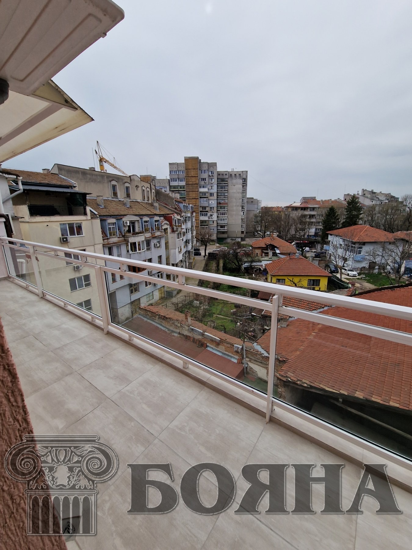 Имоти 'Бояна' отдава под наем офис, в луксозна бизнес сграда, в Центъра на града, в близост до СОУ Христо Ботев и Историческия Музей. Офисът се състои от три помещения (едно по-голямо и две по малки), просторна тераса със страхотна гледка към града и санитарен възел, с обща площ от 127кв.м. Офисът е след основен ремонт от 2023г, луксозно изпълнение с висококачествени материали. Отоплението в помещенията е решено, като са поставени климатици. Сградата е с контрол на достъпа, чудесно поддържани общи части и асансьор. Цената е 10лв на кв. м, без ДДС.