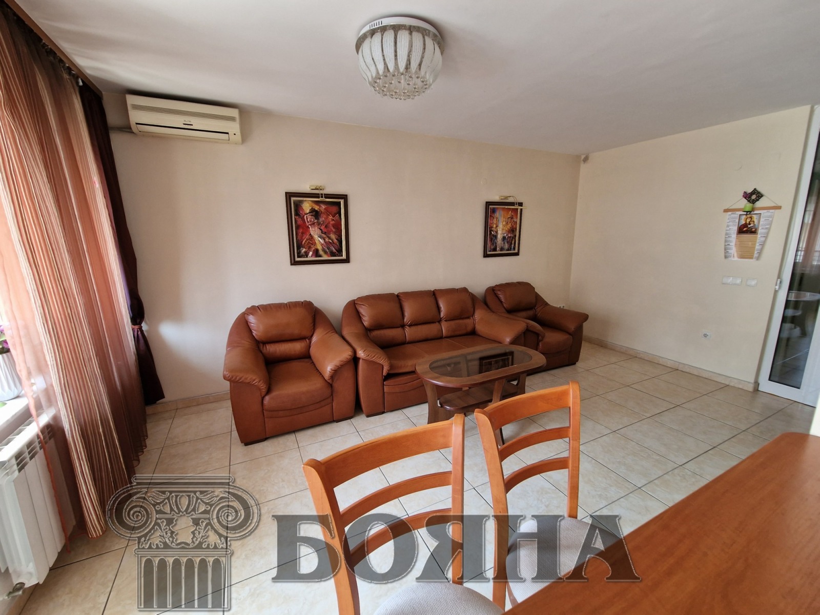 Имоти 'Бояна' отдава под наем, луксозен тристаен апартамент, в Централната част на града, в близост до Хотел Бистра и Галина, ОУ Иван Вазов, спирки и магазини. Жилището е просторно, отдава се напълно обзаведено с мебели и домакински електро уреди. Имотът е с площ от 105кв.м. и се състои от просторно входно антре, голяма всекидневна с кухненска част и излаз на тераса, две самостоятелни спални с излаз на тераса, баня с джакузи, тоалетна и мокро помещение/килер. Налични електро уреди: (хладилник, печка, котлони, съдомиялна, пералня, микровълнова, ширм, телевизори). Отоплението е на ТЕЦ, като има поставени и три броя висок клас климатици. Жилището е добре поддържано, контрол на достъпа и асансьор.
