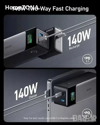 • Мощност: 140W, 100W USB-C PD 3.1 порт, 18W мощност на USB-A