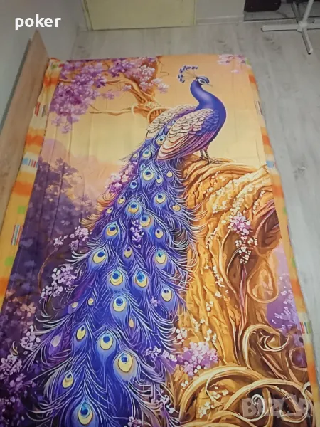 Уникални завеси полупрозрачни , еднолицеви, с канал за шина за завеси. Размери :обща ширина 226см (2 пердета по 113см широчина) , височина 229см. Декор : два пауна, един срещу друг. Материя : 100 полиестер. Пере се на 30 градуса. Не се глади! На снимките не се виждат краищата на пердето ,понеже е дълго .Имам два комплекта за два големи прозореца. При интерес пишете! Бързо ще отговоря.