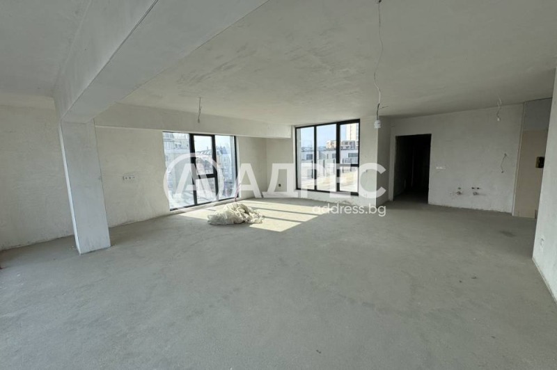 Просторен тристаен апартамент, ситуиран е на последен 6-ти етаж (5-ти жилищен) и е със следното разпределение: коридор, просторна дневна с кухненски бокс, две спални, две бани и три панорамни тераси. Изложение: Ю/И. Опция за покупка на паркомясто. Складово помещение, включено в цената. Цената е с включен ДДС.