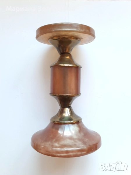 1. Свещник с мраморна основа, в цвят махагон, ръчна изработка,