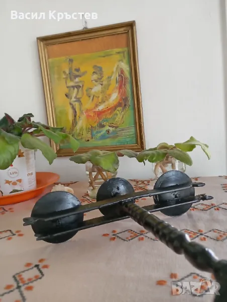 Свещници ковано желязо и др. - 9 бр., - Метална стойка за вино, - и за Картина, икона