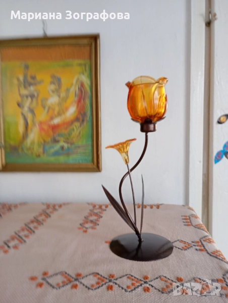 2. Свещник - Лале, цветно стъкло в кехлибарен цвят.