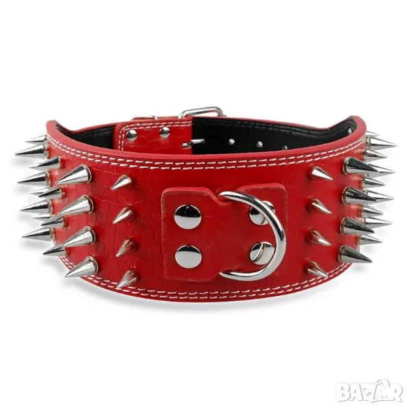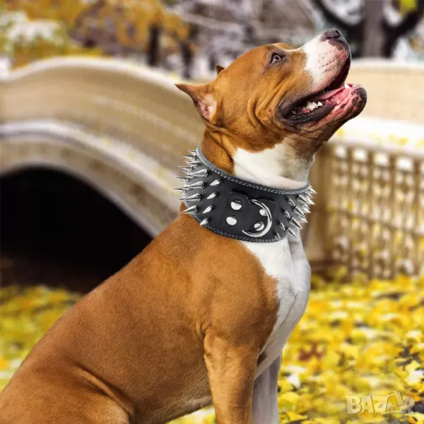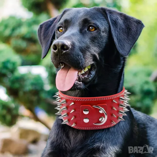 Широк нашийник с шипове за голямо куче. Нашийници за големи кучета. Каишки за кучета.