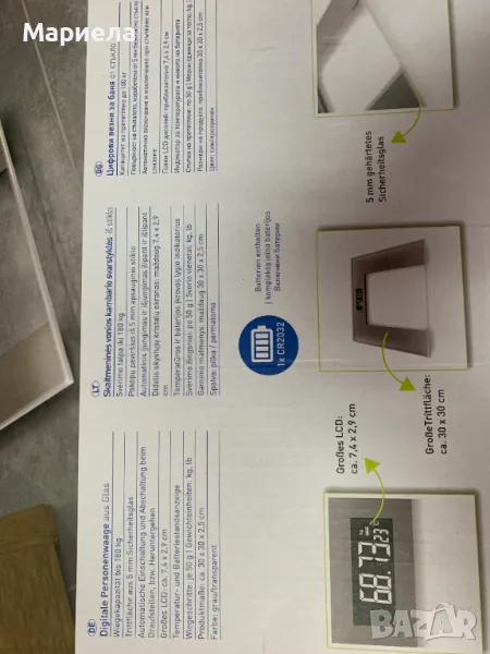 Неплъзгащите се гумени крачета осигуряват стабилност и предпазват пода. Благодарение на компактните си размери от около 30 x 30 x 2,5 cm, везната се вписва безпроблемно във всяка баня и допълва вашия дом с модерен дизайн.