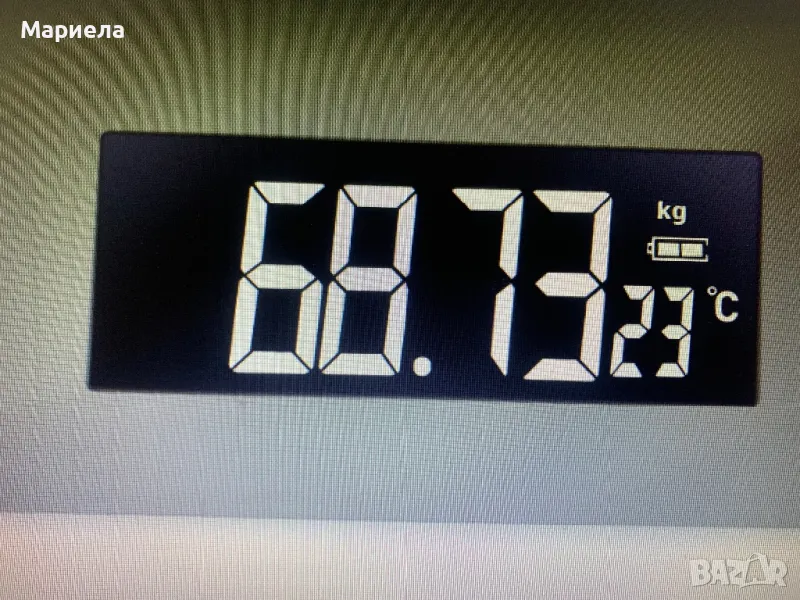 Големият LCD дисплей (приблизително 7,4 x 2,9 cm) улеснява четенето на вашите измервания . В допълнение към теглото , дисплеят показва текущата температура в помещението и нивото на батерията, така че винаги да сте добре информирани.