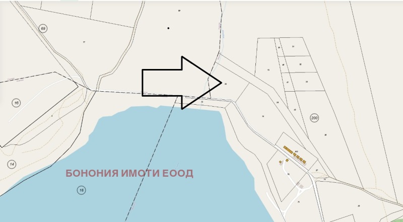 Парцел на язовир Бакърдере /язовир за международен спортен риболов/, с лице на асфалтов път, подходящ за селище, къщи за гости и мн. др.