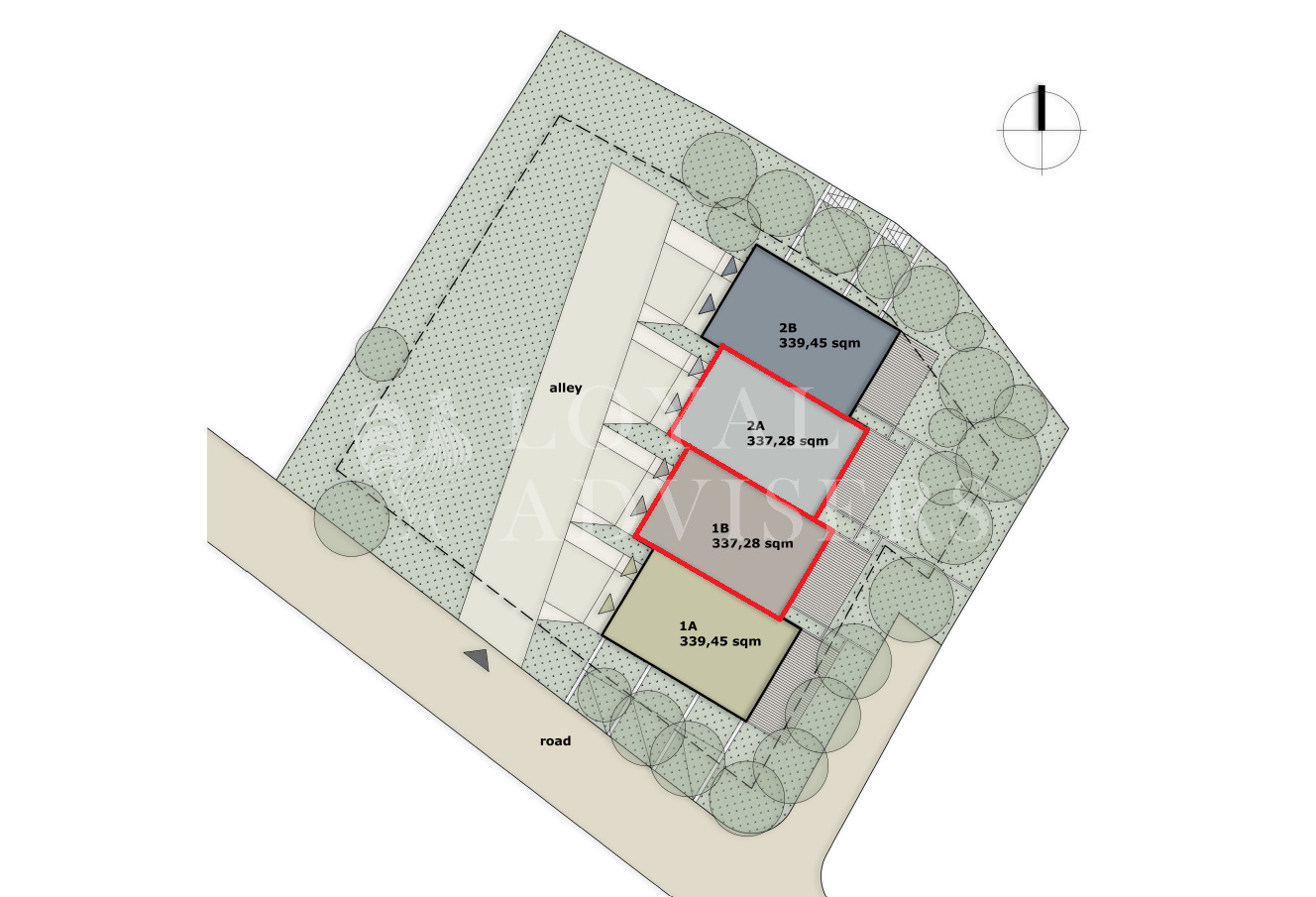Целият парцел, върху който се изграждат четирите сгради, ще бъде озеленен и ще се ползва от собствениците на всички къщи.