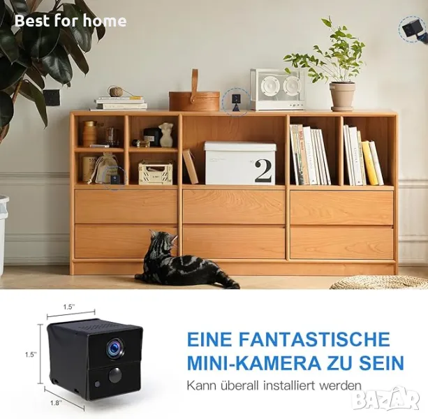 Най-малкият размер за фантастична мини камера за наблюдение: Това е камера за домашна сигурност, размерът на корпуса е само 1,8 инча и може да се закрепи на всички възможни места, напр. в хола, на верандата, в офиса и в гаража и т.н. Тази безжична мини камера AOBOCAM Q19 е много практична, тъй като няма ограничения за мрежови кабели и захранващи кабели и истинският безжичен дизайн на домашната охранителна камера за използване на закрито.