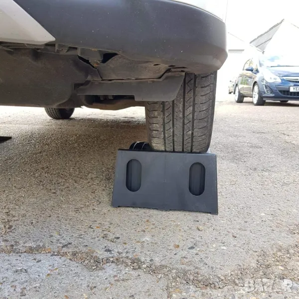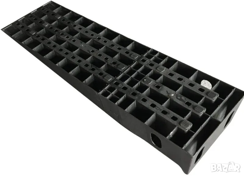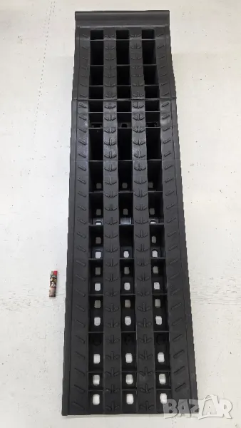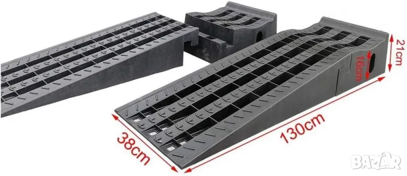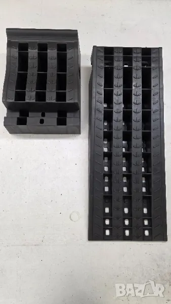 Подвижна рампа за превозни средства сглобяема от две части, изработени от издръжлива пластмаса.