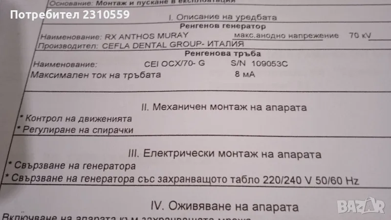 Продавам дентален кугел RX ANTHOS MYRAY , производство - Италия, поради закриване на обект. Апаратът е в отлично състояние.