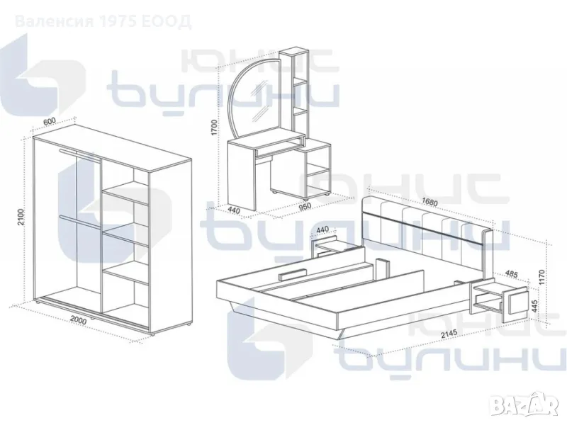 Допълнително може да се поръча тоалетка с огледало+ 269 лв.