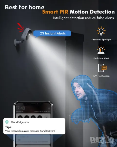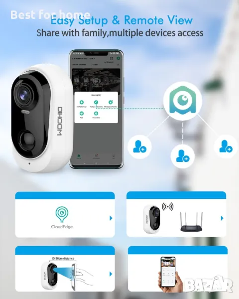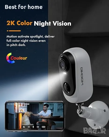 DIHOOM A4S е най-новото решение на 100% безжична външна камера, вградена издръжлива акумулаторна батерия и комбинация с нон-стоп соларен панел за осигуряване на по-дълго време за сигурност, намаляване на болката от ръчно презареждане. Предлага 1080P HD видео изживяване, винаги следете имота си с незабавни сигнали и ръчна сирена. Двупосочното аудио ви държи близо до вашата любов и собственост. Интуитивното приложение AdorCam с повече интелигентни функции ви осигурява удобство и в същото време се наслаждавайте на спокойствие!