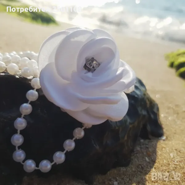 Перлено дълго колие с роза → Обява 49361637