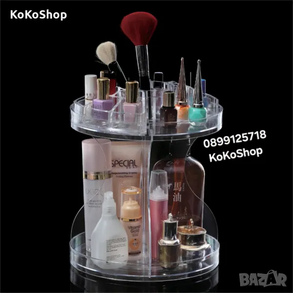 Акрилен органайзер за козметика. Органайзерът е на две нива и е с въртяща се функция.