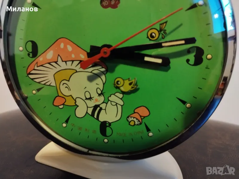 Стар механичен анимиран китайски будилник Vhite dove.Работи и звъни, птичето се клати.Диаметър-121 милиметра.Номер на часовника-242207