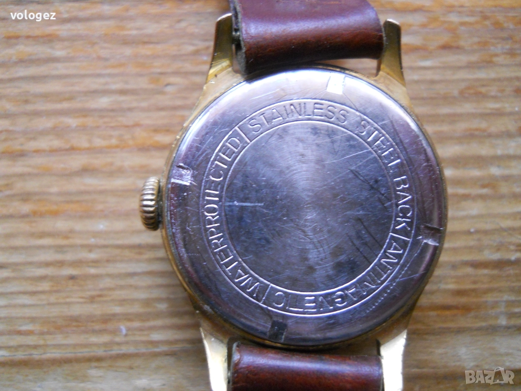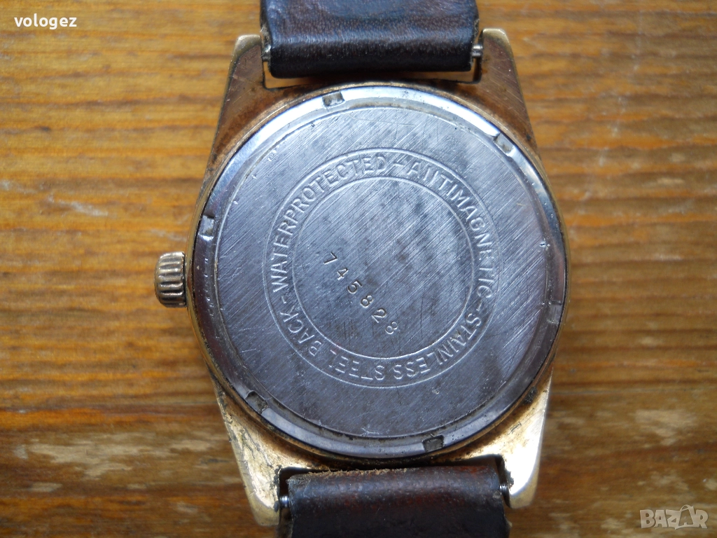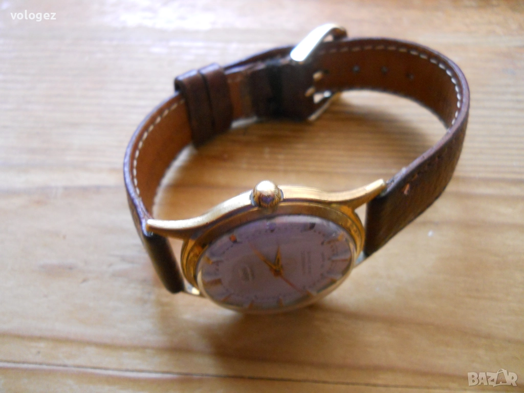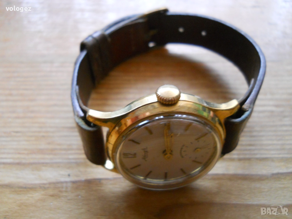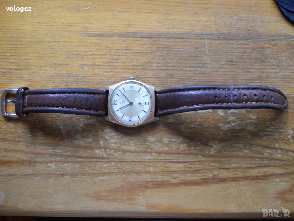 1. Стар позлатен часовник "Luga" с кожена каишка - Германия - 61,36 € / 120 лв