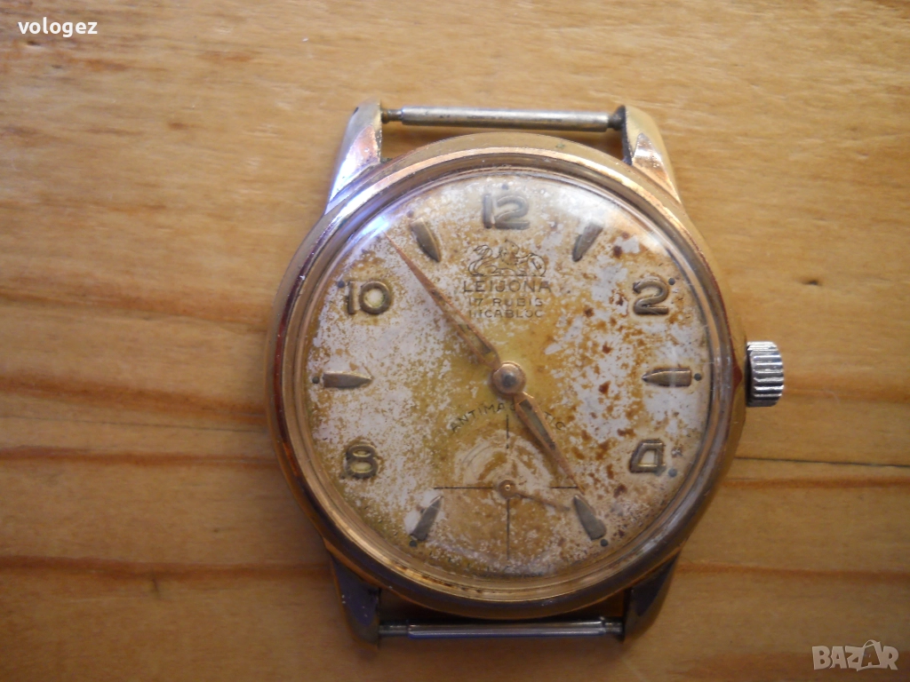 Този мъжки часовник LEIJONA, произведен в Швейцария, е произведен в средата до края на 50-те години на миналия век. LEIJONA е финландска марка, но произведена в Швейцария. Швйцарският механизъм е калибър AS1130 на Schild и е доста специален - наречен е механизъм WEHRMACHTSWERK, което в превод означава „АРМЕЙСКО ЗАДВИЖВАНЕ“, може би е така наречено поради простата си здрава конструкция.