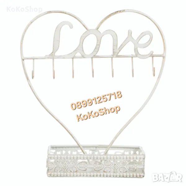 Метална стойка за бижута, с формата на сърце.