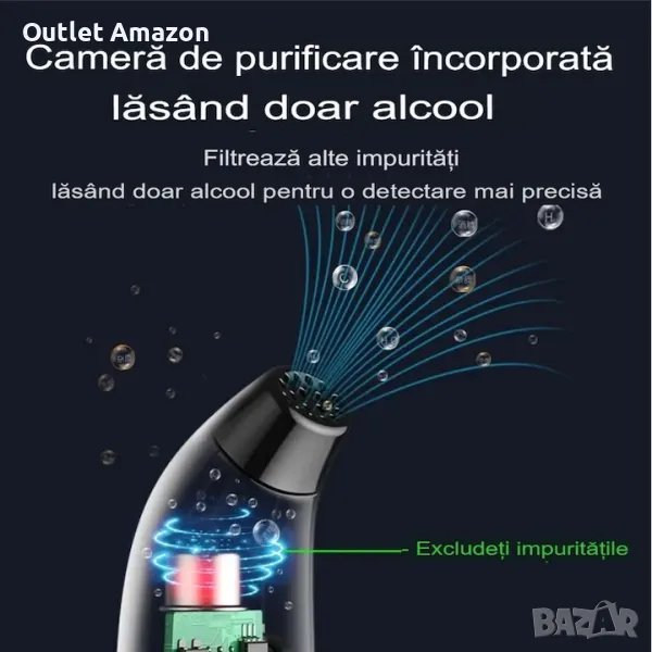 Тестер за алкохол RUTH CONNECTION, Чрез дъх без контакт, USB зареждане. Проектиран с ултрачувствителна полупроводникова сензорна система, цифровият дрегер ще ви каже дали съдържанието на алкохол надвишава законовата граница, за да гарантира безопасността на шофирането.