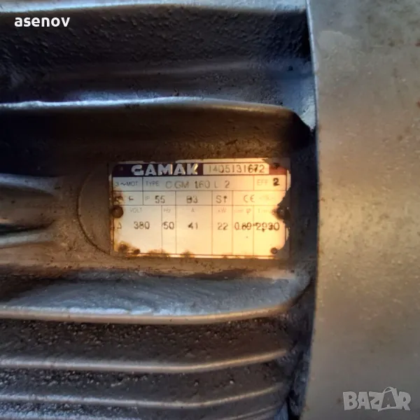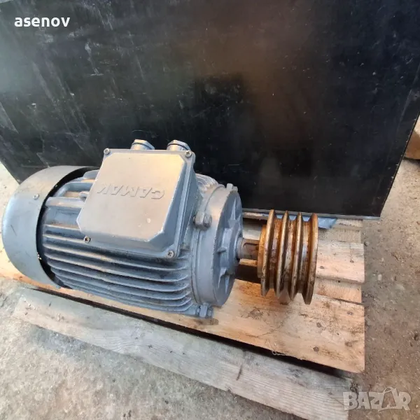 продавам ел. двигател с мощнист 22 кв, 2930 оборота в минута, диаметър на ос 42 мм, диаметър на шайба 18 см