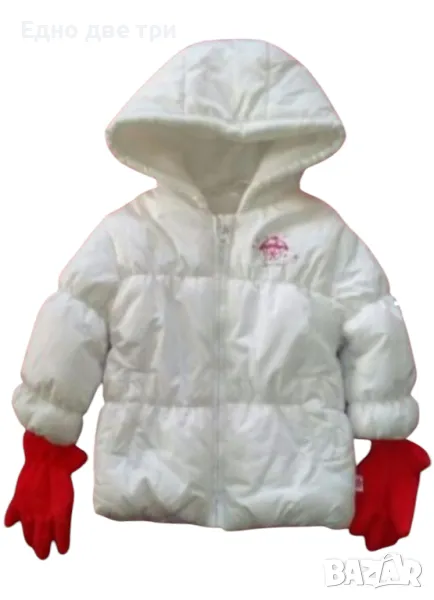-Бебешко яке. Цвят - бял. Размер - 68 см. Към якето са добавени червени ръкавички.