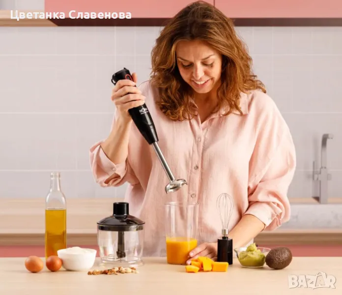 Ръчният пасатор Mixo 800 Chef трябва да присъства във всяка кухня. Има кана за нарязване, чаша за емулгиране и друга мерителна чаша, така че можете да направите всякакъв вид рецепти, като контролирате количествата, които ще използвате. Неговите две остриета от неръждаема стомана с голяма производителност, устойчивост и издръжливост ще ви позволят да правите всички видове пюрета, сосове и кремове, постигайки перфектната текстура.