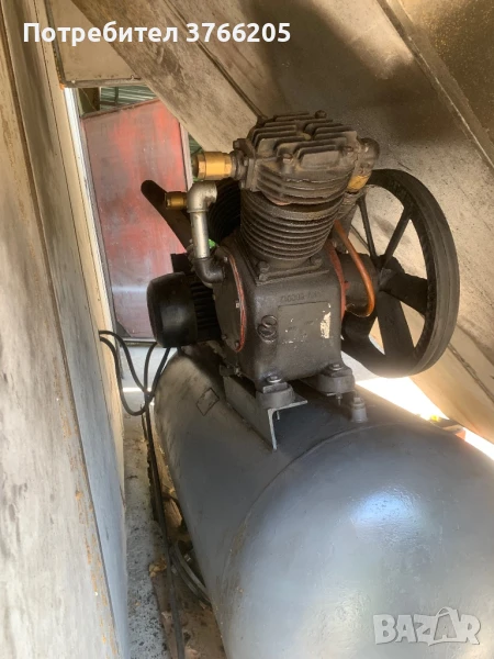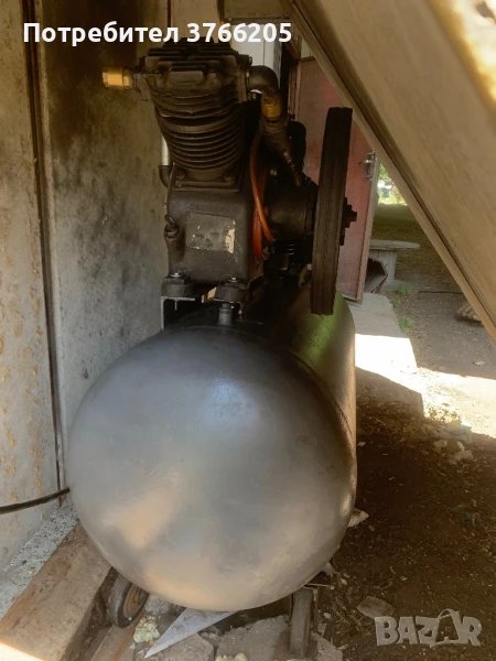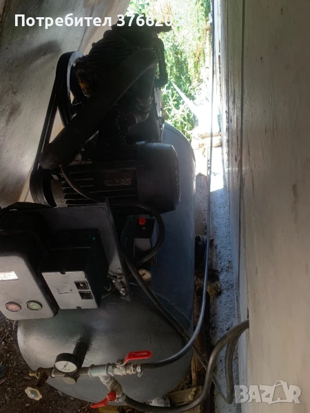Български компресор Ук50 с 500л бутилка. Мотор- 7.5kW. Главата е след основен ремонт 2024г. Сменени са сегменти, шлайфани цилиндри, подсилени клапани, 1бр ново бутало и сменен основен лагер. Направени са подобрения по компресора с подсилени клапани като на изхода има дебит от около 1000л в минута. Има поставени 4 възвратни клапани на главите. С нови кранове, връзки и съединения. Има направени подобрения по картерната вентилация.