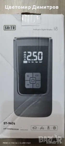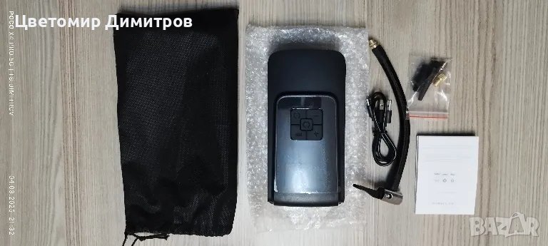 Портативен компресор за въздух за кола с батерия от 4000 mAh. Зареждане чрез USB тип-C, цифров дисплей, LED светлина за аварийни случаи. Става за помпене на гуми за кола, мотоциклет, велосипед, топки.