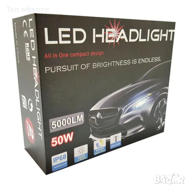 Комплект иновативни LED крушки за фарове 9006 - 5500k. (5000LM)