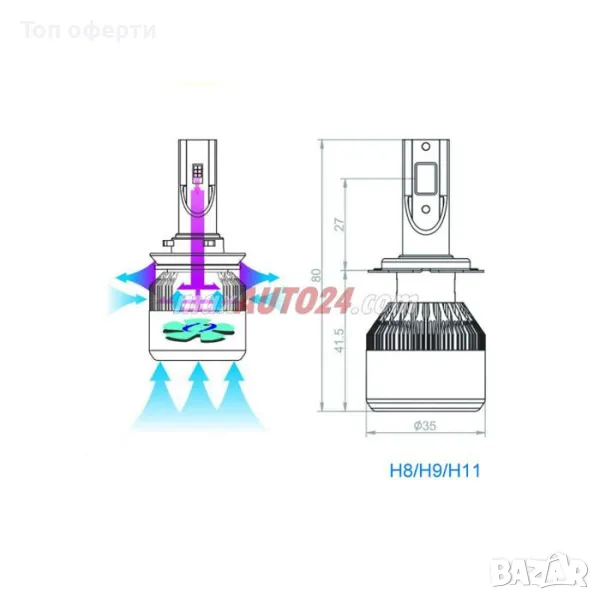Диодни крушки C6 H8 - 36W 2брк-т Над 150% по-ярка светлина с вентилатор за по-добро охлаждане