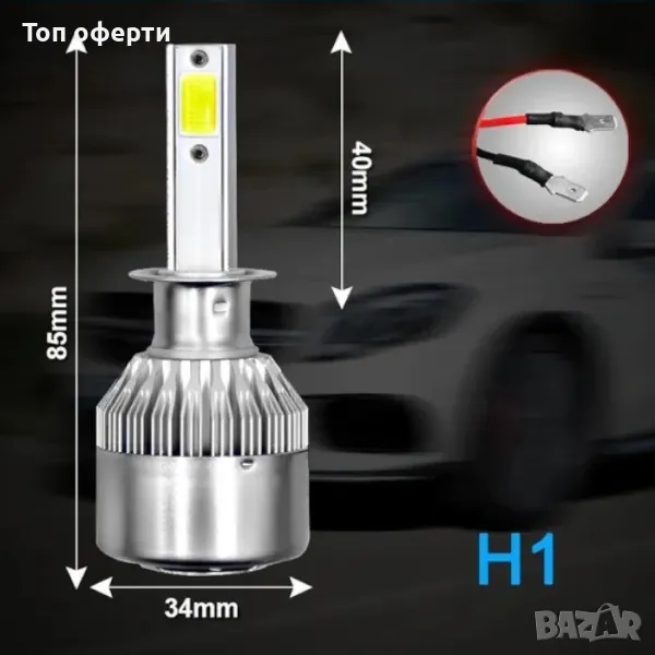 Комплект иновативни COB LED крушки за фарове H1 - 6000k.