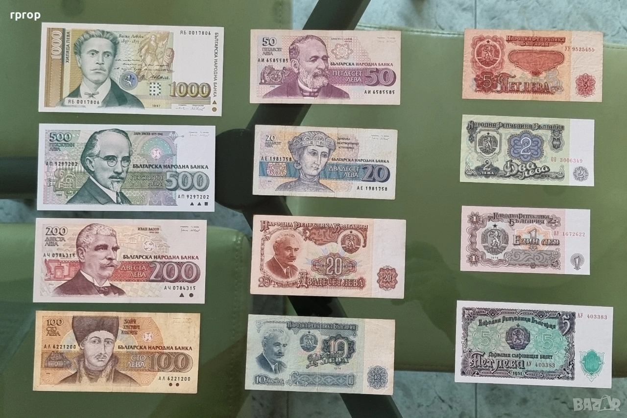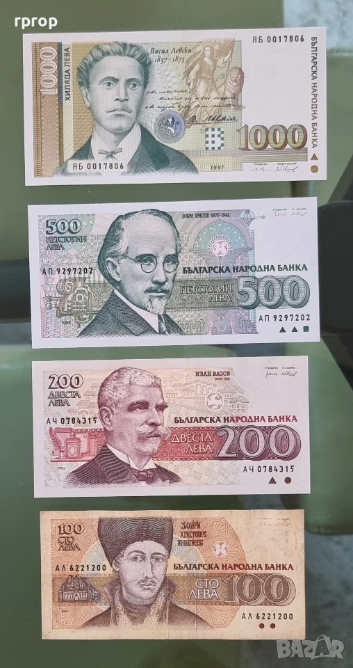 Банкнотите от 100, 500 и1000 лева са UNC ,чисто нови.