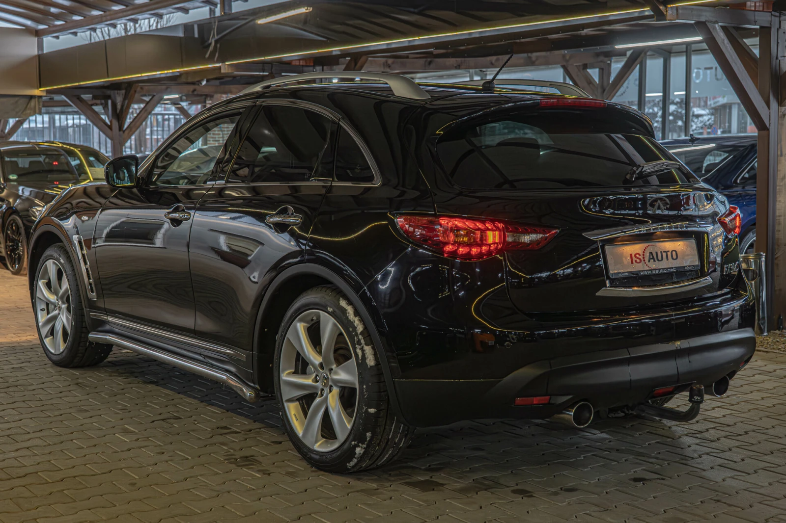 Наличен Infinity FX30s Допълнителни функции: Въздушна възглавница от страната на водача/пътника, активни подглавници, активна вентилация на предните седалки, аудио система: радио с CD и MP3 плейър, електрически външни огледала. сгъваеми, външни огледала електрически регулируеми и отопляеми, външни огледала с функция за паркиране/помощ за паркиране на заден ход, външни огледала в цвета на каросерията, биксенонови фарове с динамични светлини за завиване, релси на покрива (алуминий), автоматично включване на светлините, комплект за първа помощ, електронно контролирано окачване на шасито (Continuous Damping Control, CDC), цветен дисплей (7, 0 инча), електрически стъкла отпред + отзад, Bluetooth система за свободни ръце, багажно отделение капак/ролетна щора, задна врата с автоматична система за отваряне и затваряне, LED задни светлини, интериор: дърво, клен, вътрешно огледало с автоматично затъмняване, Isofix система за детско столче, купе: 5 врати, 2-зонен автоматичен климатроник с авт. Контрол на рециркулацията на въздуха, боя със свойства против надраскване (устойчива на надраскване), седалка с лумбална опора, предна лява, електрическа. регулируема, кормилна колона (волан) ел. регулируеми с памет, алуминиеви джанти, задни вентилационни дюзи, актуализация на модела, двигател 3. 0 литра - 175 kW дизелов катализатор, алуминиеви педали, междуосие 2885 мм, система за следене на налягането в гумите, резервно колело като аварийно колело,