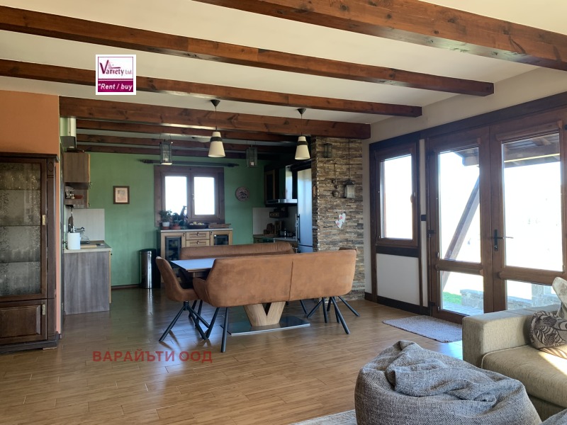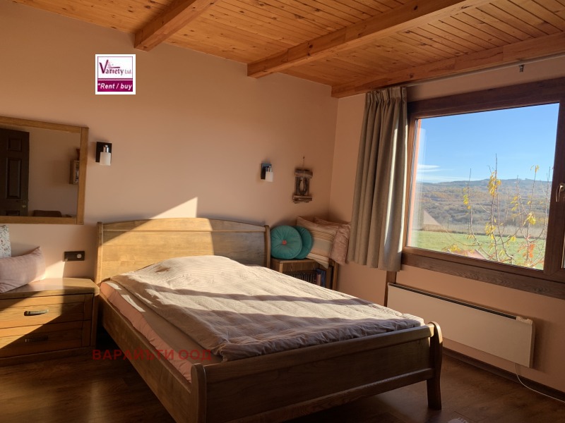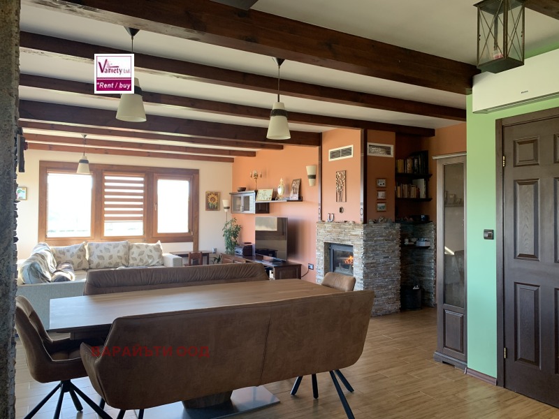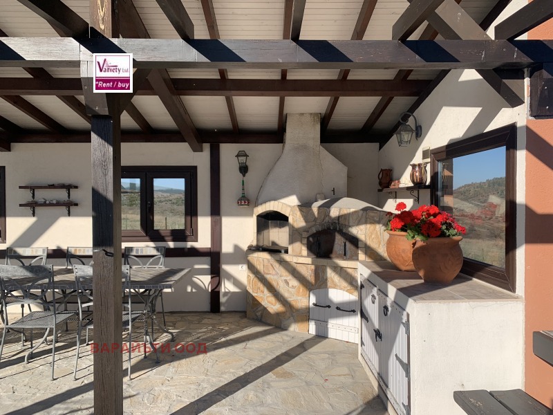 Просторен и огрян от слънцето дом, построен и обзаведен с оригинален, функционален и красив дизайн с изложение във всички посоки и спиращи дъха гледки. Къщата е разположена на един етаж от 140 м2, с веранда 45 м2, която при желание, би могла да влезне в ползваемата квадратура на къщата. Намира се на 25 км от София в слънчевото село Златуша. В близост са разположени къщи, в които се живее целогодишно, но т.к. къщата е във високата част на селото, дворът около нея е 3500 м2, създава усещане за простор и уединение. Състои се от входно антре, стая за обслужване, в която се помещават бойлер, пералня, хидрофор, резервно електрозахранване; сауна; просторна дневна, в която е разгънат дневен кът, трапезарна част и напълно оборудвана кухня с висок клас мебели и уреди. Дневната е с камина, която е конструирана така, че да отоплява цялата къща, като от нея има излаз към двора през изцяло остъклени врати. Трите спални със самостоятелни бани и гардеробни към всяка допринасят за комфорта и удобството, а високият клас дограма, настилки и уютно обзавеждане прави къщата дом. В двора са разположени навес за паркиране, входна постройка за съхранение на дърва и зимнина, а навеса барбекю върху площадка от 120 м2 с лека и романтична постройка могат да се превърнат в желано място за отдих в летните жеги. Собствен водоизточник, UPS за постоянен ток и слънчеви батерии, СОТ, камери, висоскоскоростен интернет. Имотът е подходящ, както за лятна вила до София, така и за целогодишно живеене, чисти документи, бързи огледи. Пълно съдействие при набавяне на документи, връзка с кредитни консултанти. За повече информация и огледи, моля да се свържете с нас на : 02 963 3151, 0888551425; 0888 639 540.