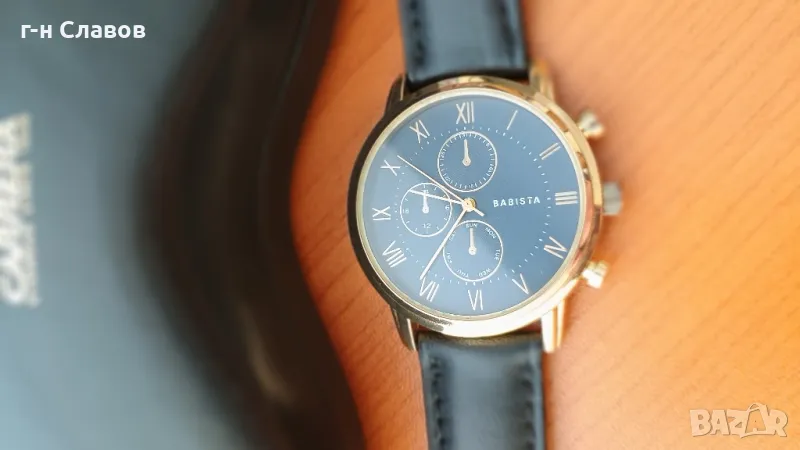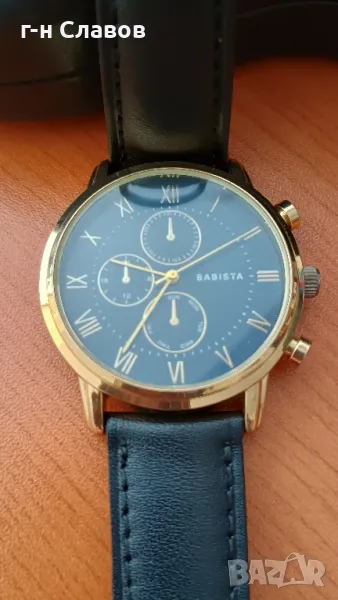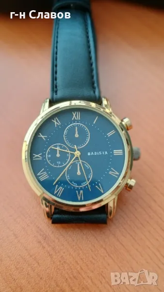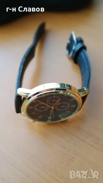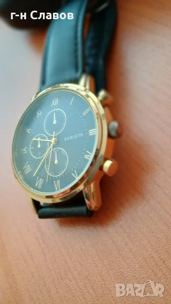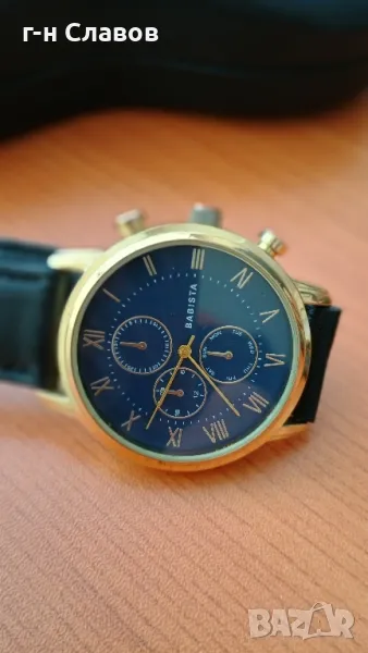 Мъжки ръчен испански Basista! Златиста каса 40мм*Нова батерия! Кожена каишка* → Обява 49367728