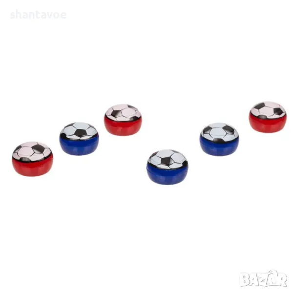 6 броя футболни топки с колелца – 3 в червен цвят и 3 броя в син.