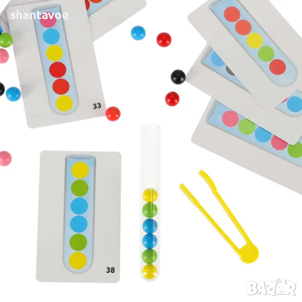 Играта за разделяне по цветове с 40 дървени топчета е образователен подарък за детски рожден ден, имен ден, Деня на детето,