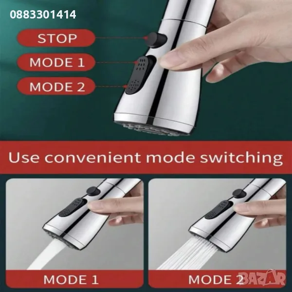 Просто натиснете бутона на крана, за да превключите на желания режим за пестене на вода, усилване или пръскане за различните нужди.