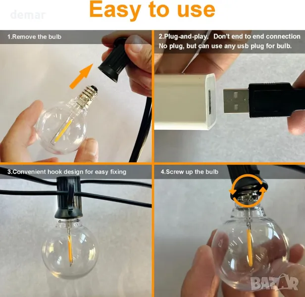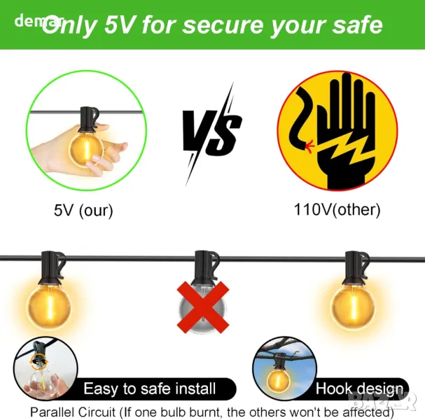 IP65 водоустойчиви и устойчиви на разбиване, тези външни светлини издържат на дъжд, сняг и вятър, което ги прави идеални за градини, вътрешни дворове, балкони и беседки. Изработени от пластмаса, устойчива на висока температура, те няма да се счупят на опасни парчета. Снабдени с 12 енергийно ефективни 0,6 W LED крушки, те намаляват разходите за електроенергия с 95% в сравнение с лампите с нажежаема жичка от 7 W, с паралелна верига, осигуряваща продължителна работа дори ако една крушка се повреди. Кабелът от 7,6 метра се предлага предварително инсталиран и тестван за лесна настройка plug-and-play, с вградени кукички за сигурно окачване. Излъчвайки топла 2700K светлина, те създават уютна атмосфера за събирания, идеални за летни вечери и празнични поводи.