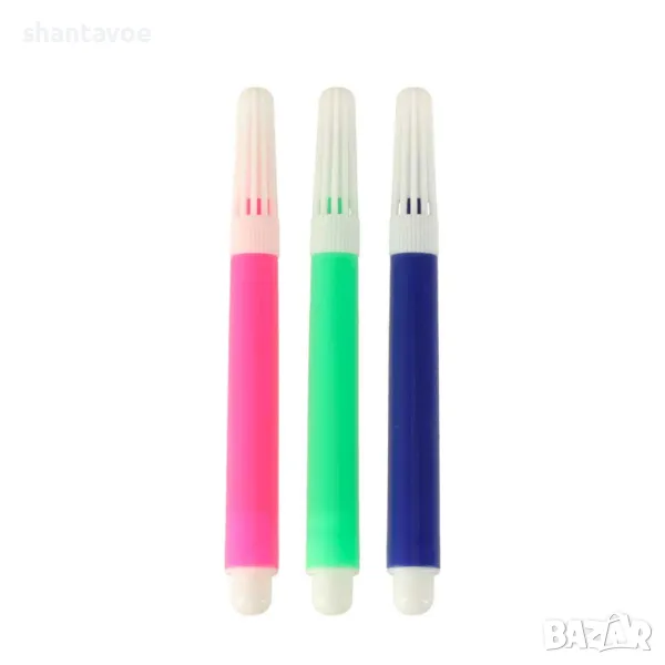 В комплекта са включени 3 флумастера в розов, син, и зелен цвят.
