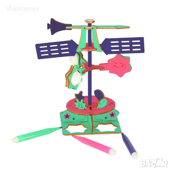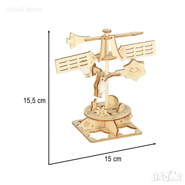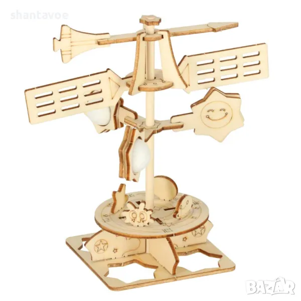 Играта включва всичко необходимо за сглобяването на дървен ветропоказател.